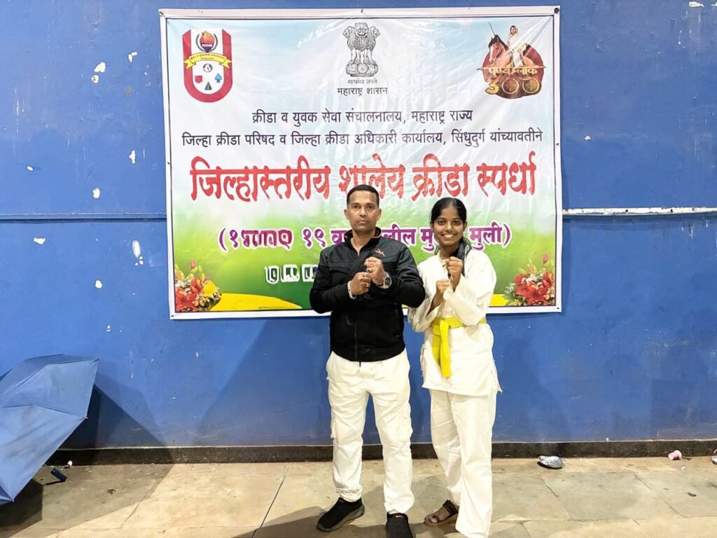 सिंधुदुर्ग, दि.१४: क्रीडा व युवक सेवा संचालनालय, महाराष्ट्र राज्य जिल्हा क्रीडा परिषद व जिल्हा क्रीडा अधिकारी कार्यालय, सिंधुदुर्ग यांच्यावतीने आयोजित शालेय जिल्हास्तरीय कराटे स्पर्धेत पुन्हा एकदा खेमराज बांदाच्या कु.प्रेरणा जय भोसले हिने जिल्ह्यात तृतीय क्रमांक प्राप्त करत ब्रॉंझ मेडल प्राप्त केलं.