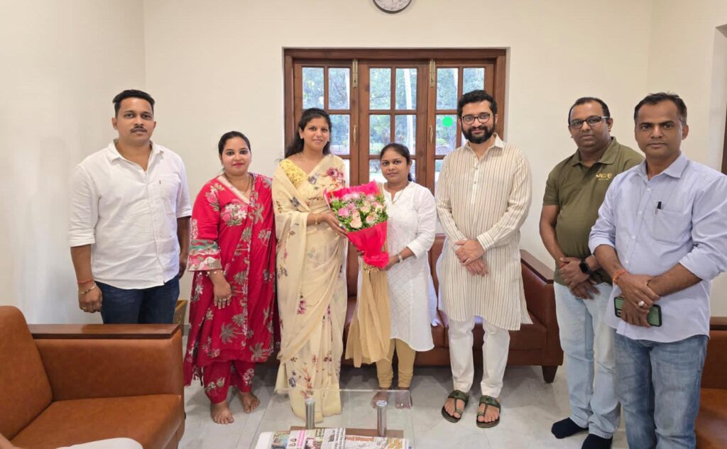 सावंतवाडी,दि.२४: ज्युनियर चेंबर इंटरनॅशनल (JCI) सावंतवाडीच्या पदाधिकाऱ्यांनी सावंतवाडीच्या नगराध्यक्ष श्रद्धाराजे भोसले यांची नुकतीच सदिच्छा भेट घेतली. या विशेष भेटीप्रसंगी युवराज लखमराजे भोसले हे देखील उपस्थित होते. या भेटीदरम्यान JCI संस्थेची ध्येयधोरणे, युवक सक्षमीकरणासाठी सुरू असलेले उपक्रम तसेच शहरात राबविण्यात येणाऱ्या विविध सामाजिक व विकासात्मक प्रकल्पांची सविस्तर माहिती नगराध्यक्षांना देण्यात आली.
