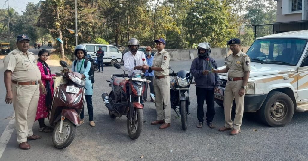 सिंधुदुर्ग,दि.२१: उप प्रादेशिक परिवहन कार्यालय सिंधुदुर्ग यांच्यामार्फत राबविण्यात आलेल्या रस्ता सुरक्षा अभियाना अंतर्गत शनिवार २० जानेवारी रोजी NH – 66 मुंबई गोवा महामार्गावर हेल्मेट वापरणाऱ्या चालकांचा गुलाब पुष्प देऊन सत्कार करण्यात आला. तसेच वाहतुकीचे नियम पाळण्याबाबत वाहचालकांना प्रबोधन व मार्गदर्शन करण्यात आले. यावेळी मोटार वाहन निरीक्षक सचिन पोलादे, अरुण पाटील, सहा.मोटार वाहन निरीक्षक केतन पाटील,श्री सावंत, वाहन चालक श्री राणे उपस्थित होते.