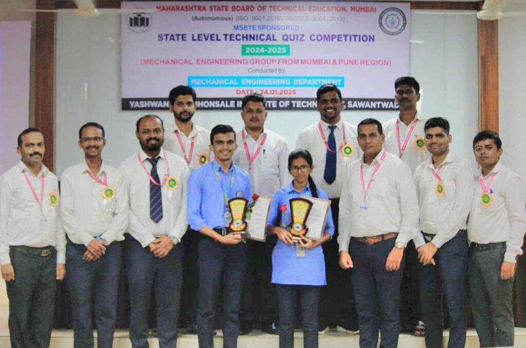सावंतवाडी,दि.२५: महाराष्ट्र राज्य तंत्रशिक्षण मंडळ पुरस्कृत राज्यस्तरीय टेक्निकल क्विझ कॉम्पिटिशन यशवंतराव भोसले इन्स्टिटयूट ऑफ टेक्नॉलॉजी येथे पार पडली. मेकॅनिकल शाखेच्या विद्यार्थ्यांसाठी आयोजित या स्पर्धेत मुंबई व पुणे विभागातील एकूण अठरा तंत्रनिकेतन संस्था सहभागी झाल्या होत्या. स्पर्धेचे उदघाटन संस्थेचे कार्याध्यक्ष अच्युत सावंतभोसले यांच्या हस्ते करण्यात आले. यावेळी प्राचार्य डॉ.रमण बाणे, उपप्राचार्य गजानन भोसले, शासकीय तंत्रनिकेतन, रत्नागिरीचे अधिव्याख्याता व परीक्षक अमोल धांडे, सचिन लांजेकर, मेकॅनिकल विभागप्रमुख अभिषेक राणे उपस्थित होते.