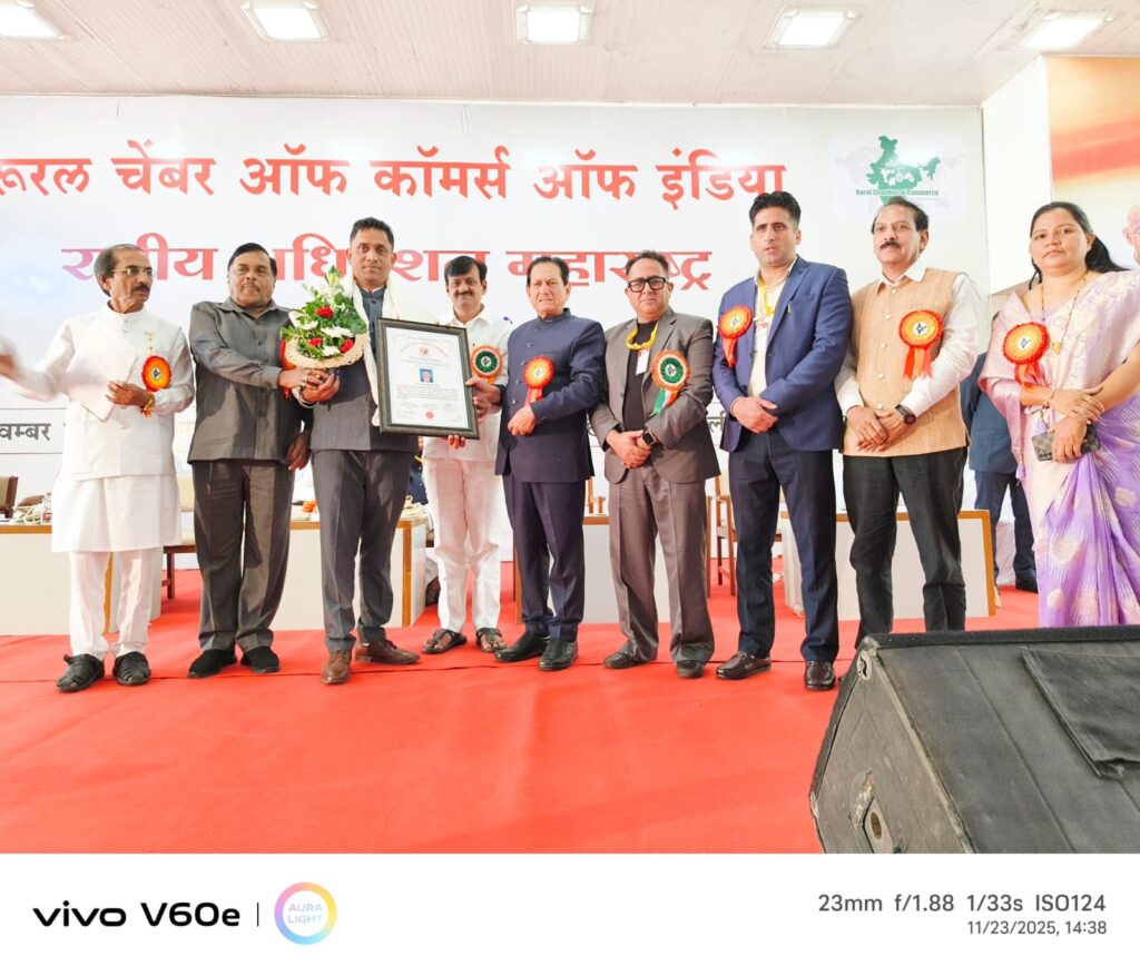 कुडाळ,दि.२४: युनियन बँकेचे माजी युनियन लीडर तथा सेवानिवृत्त बँक कर्मचारी व कुडाळ येथील सुप्रसिद्ध बांबू उद्योजक आणि बांबू पिकाला व व्यवसायाला एका वेगळ्या उंचीवर नेऊन शेतकऱ्यांसाठी अहोरात्र झटणारे कृषीप्रेमी संतोष शिवाजी राणे यांना रविवारी जळगाव येथील जैन हिल्स येथे आयोजित रुरल चेंबर ऑफ कॉमर्स ऑफ इंडिया द्वारा राष्ट्रीय अधिवेशनात छत्रपती शिवाजी महाराज लोकविद्यापीठ, अमरावती यांच्या वतीने ‘मानद डॉक्टरेट’ पदवी सन्मानपूर्वक बहाल करण्यात आली.