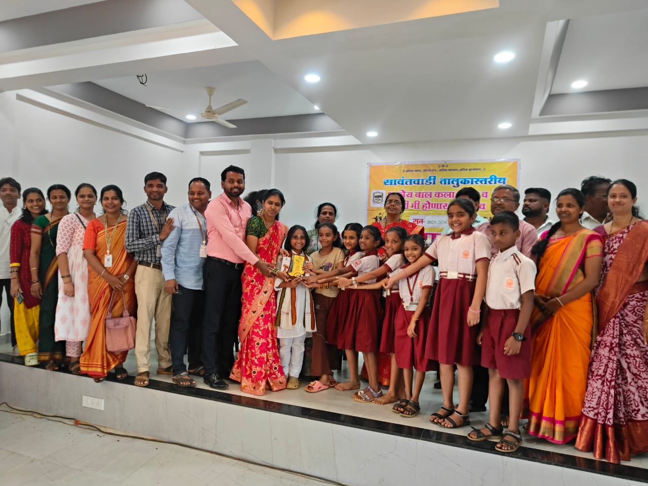 सावंतवाडी,दि .२०: सिंधुदुर्ग जिल्हा परिषद आयोजित बाल कला, क्रीडा व ‘ज्ञानी मी होणार’ महोत्सव २०२५-२६ अंतर्गत आयोजित सावंतवाडी तालुकास्तरीय समूहनृत्य स्पर्धेत सावंतवाडी एज्युकेशन सोसायटीच्या कळसुलकर प्राथमिक शाळेने प्रथम क्रमांक पटकावून दिमाखदार यश संपादन केले आहे. या घवघवीत यशामुळे या शाळेचा संघ आता सावंतवाडी तालुक्याचे प्रतिनिधित्व करत आगामी जिल्हास्तरीय स्पर्धेत सहभागी होणार आहे.