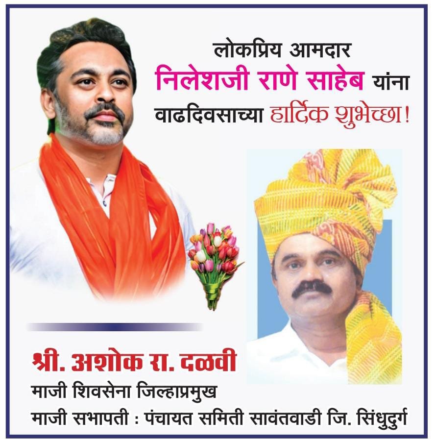 जनसामान्यांच्या प्रश्नांसाठी सदैव तत्पर असणारे, धडाडीचे आणि तरुण पिढीचे प्रेरणास्थान, कार्यसम्राट माजी खासदार आणि विद्यमान आमदार श्री. निलेशजी राणे साहेब यांना वाढदिवसाच्या अनंत शुभेच्छा!