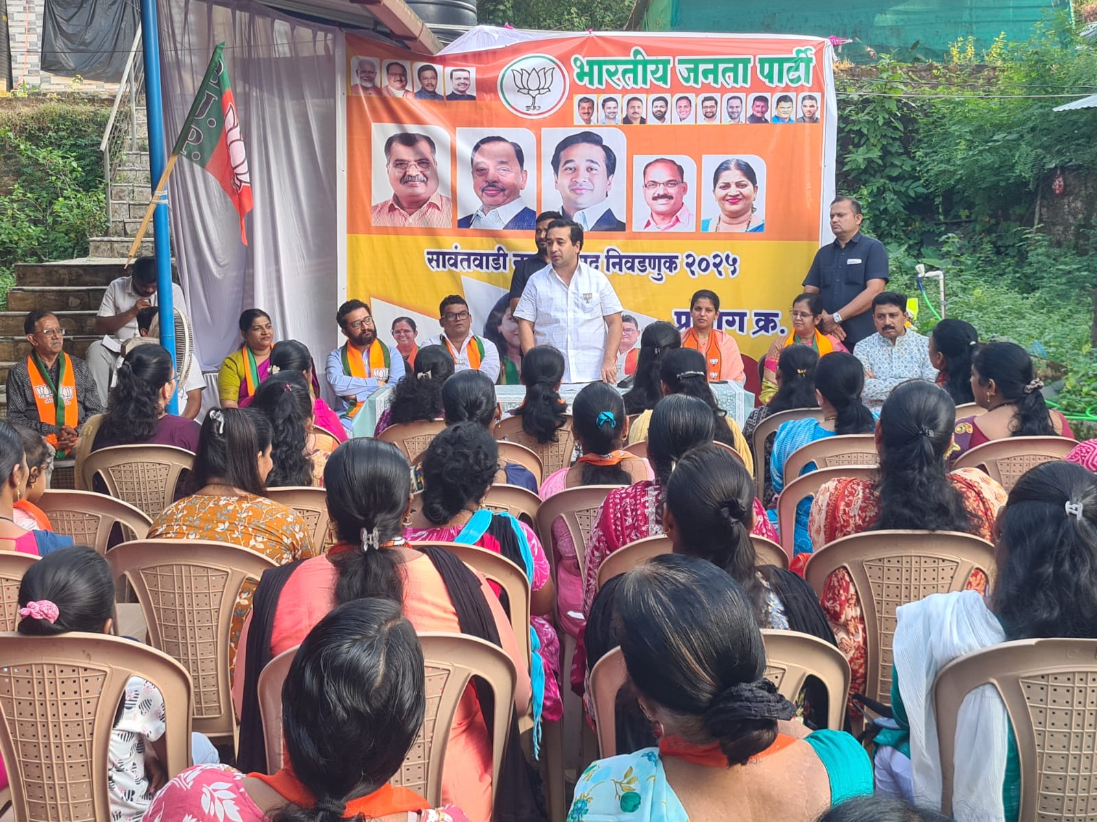सालईवाडा येथे त्यांनी ही बैठक घेतली. यावेळी जनतेशी संवाद साधत त्यांच्या अडचणी जाणून घेतल्या. आपल्या विचारांचा नगराध्यक्ष, नगरसेवक निवडून देण्यासाठी भाजपला पाठिंबा देण्याचे आवाहन त्यांनी केले. देशात, राज्यात भाजपच सरकार आहे. त्यामुळे सर्व प्रश्नांची सोडवणूक करण्यासाठी आम्ही कटिबद्ध असल्याचे त्यांनी सांगितले. यावेळी नगराध्यक्षपदाच्या उमेदवार युवराज्ञी श्रद्धाराजे भोंसले, युवराज लखमराजे भोंसले, महिला जिल्हाध्यक्षा श्वेता कोरगावकर, भाजपचे नगरसेवक पदासाठीचे उमेदवार अमित गवंडळकर, मेघा डुबळे, प्रतिक बांदेकर, सुकन्या टोपले आदींसह भाजप पदाधिकारी, कार्यकर्ते उपस्थित होते.
