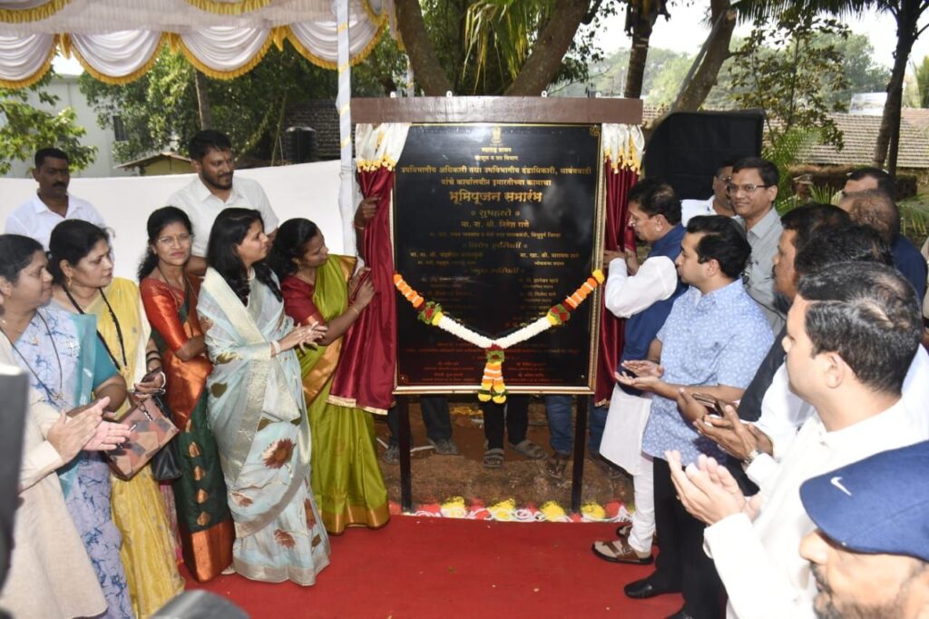 सावंतवाडी उपविभागीय कार्यालयाच्या इमारतीचे पालकमंत्र्यांच्या हस्ते भूमिपूजन; आ. दीपक केसरकर व नगराध्यक्षा श्रद्धाराजे भोसले यांची प्रमुख उपस्थिती