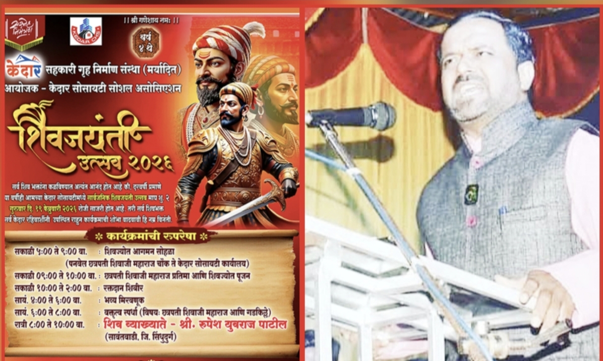 मुंबई, दि.१४: “छत्रपती शिवराय केवळ डोक्यावर घेऊन मिरवण्याचा विषय नसून, त्यांचे विचार डोक्यात घेऊन आचरणात आणणे ही काळाची गरज आहे,” हा संदेश देण्यासाठी नवी मुंबईत शिवजयंतीचा मोठा सोहळा रंगणार आहे. तळोजा येथील केदार सहकारी गृहनिर्माण संस्था (मर्यादित) व केदार सोसायटी सोशल असोसिएशन यांच्या संयुक्त विद्यमाने शुक्रवार, १९ फेब्रुवारी २०२६ रोजी शिवजयंती उत्सवाचे भव्य आयोजन करण्यात आले आहे. या सोहळ्याचे मुख्य आकर्षण म्हणजे महाराष्ट्रातील सुप्रसिद्ध प्रेरणादायी वक्ते तथा शिवव्याख्याते प्रा. रूपेश पाटील (सावंतवाडी) यांचे ‘शिवराय डोक्यावर नव्हे, डोक्यात घ्यायला शिका!’ या विषयावर होणारे धगधगते व्याख्यान.