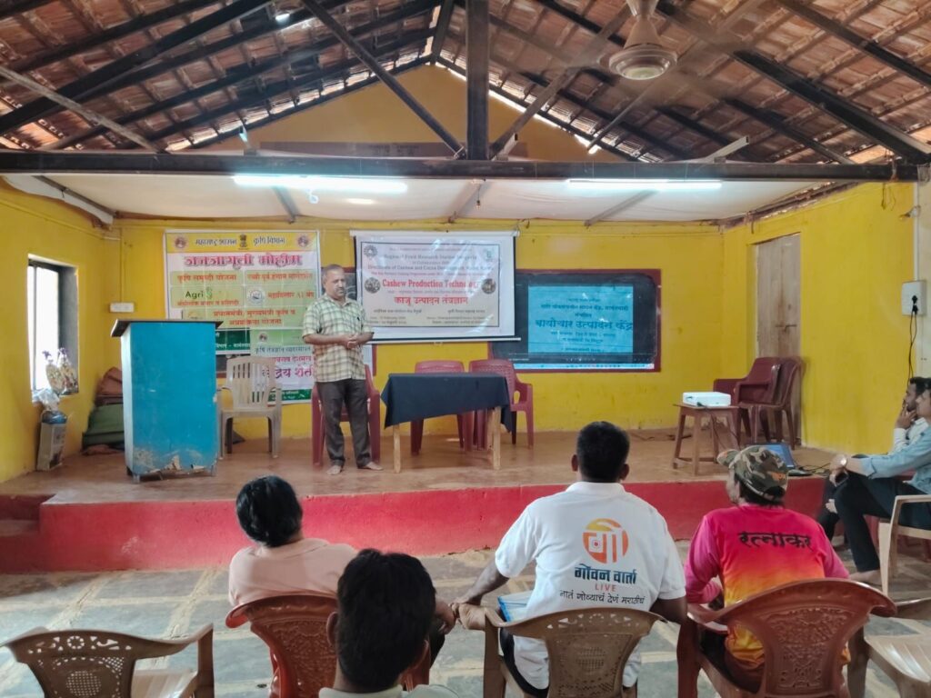 काजू पिकावरील कीड आणि रोगांचे संकट ही शेतकऱ्यांसाठी मोठी समस्या असते. या विषयावर संशोधन सहयोगी श्री. के. व्ही. स्वामी यांनी प्रभावी व्यवस्थापन कसे करावे, याबाबत मार्गदर्शन केले. बांदा येथील मंडळ कृषी अधिकारी श्री. युवराज भुईम्बर यांनी ‘बायोचार’ या विषयावर सखोल माहिती देत ‘पीएम किसान’ योजनेचा लाभ कसा घ्यावा, याबद्दल शेतकऱ्यांना अवगत केले. तांबोळी येथील सहाय्यक कृषी अधिकारी श्री. मिलिंद सुरेश निकम यांनी आधुनिक काळाची गरज ओळखत ‘महाविस्तार AI’ या तंत्रज्ञानाचा वापर कृषी क्षेत्रात कसा करावा, याची प्रात्यक्षिके दाखवली आणि विभागाच्या इतर योजनांची माहिती दिली.
