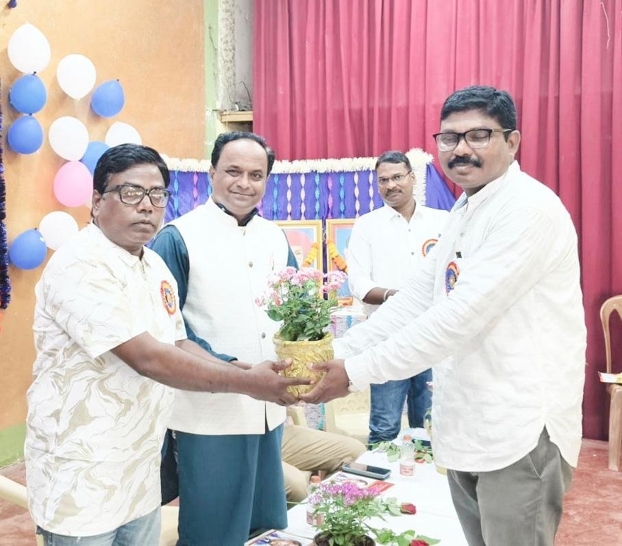 वेरणा येथील कोकण रेल्वेच्या अखिल भारतीय एस.सी., एस.टी. कर्मचारी संघटनेच्या वतीने छत्रपती शिवाजी महाराज, महात्मा ज्योतिराव फुले व डॉ. बाबासाहेब आंबेडकर या महामानवांच्या संयुक्त जयंती कार्यक्रमाचे आयोजन करण्यात आले होते. याप्रसंगी प्रमुख व्याख्याते म्हणून प्रा. पाटील बोलत होते. यावेळी व्यासपीठावर डीईई शुभम सिन्हा, वरिष्ठ डीओएम इनायत हुसेन, सुप्रसिद्ध शिल्पकार तथा उपक्रमशील शिक्षक हंसराज गवळे, संयुक्त जयंती समितीचे अध्यक्ष प्रशांत जाधव, सचिव दीपक जाधव, सुरज कांबळे आदि मान्यवर उपस्थित होते.
