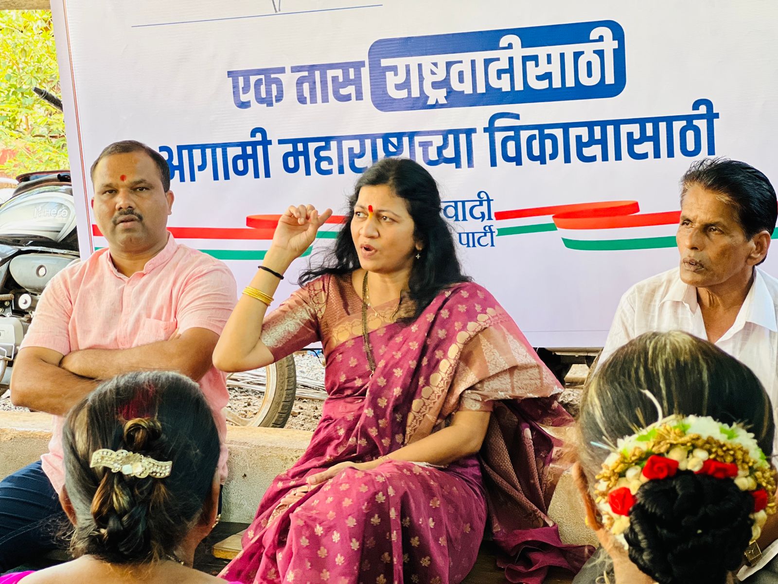 या बैठकीसाठी राष्ट्रवादी काँग्रेस पार्टीच्या कोकण विभागीय अध्यक्षा अर्चनाताई घारे, तालुकाध्यक्ष पुंडलिक दळवी, सुमित्रा परब, रमेश परब, नीता परब, अशोक परब, प्रियंका रावळ, सावित्री परब, छाया परब, द्रोपदी पतासे, विनायक परब बाळा परब आदी पदाधिकारी उपस्थित होते.